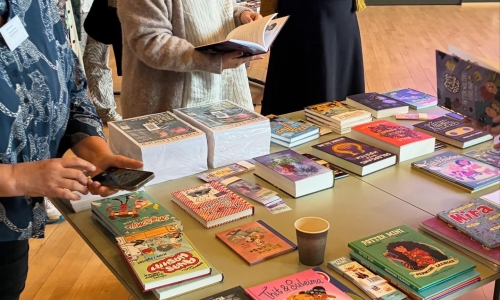 Her stod indholdsredaktør Anne Lind Andersen for præsentation af nogle af årets udgivelser. Hun havde taget hele to med. En forfatter og en illustrator. Forfatter Sanne Munk Jensen og Illutrator Angelica Inigo. Anne Lind Andersen havde valgt interviewformen. Sanne Munk Jensen og Angelica Inigo fortalte om tilblivelsen af seriebøgerne Thit og Suleima, og hvordan samarbejdet udgør en art af symbiose.